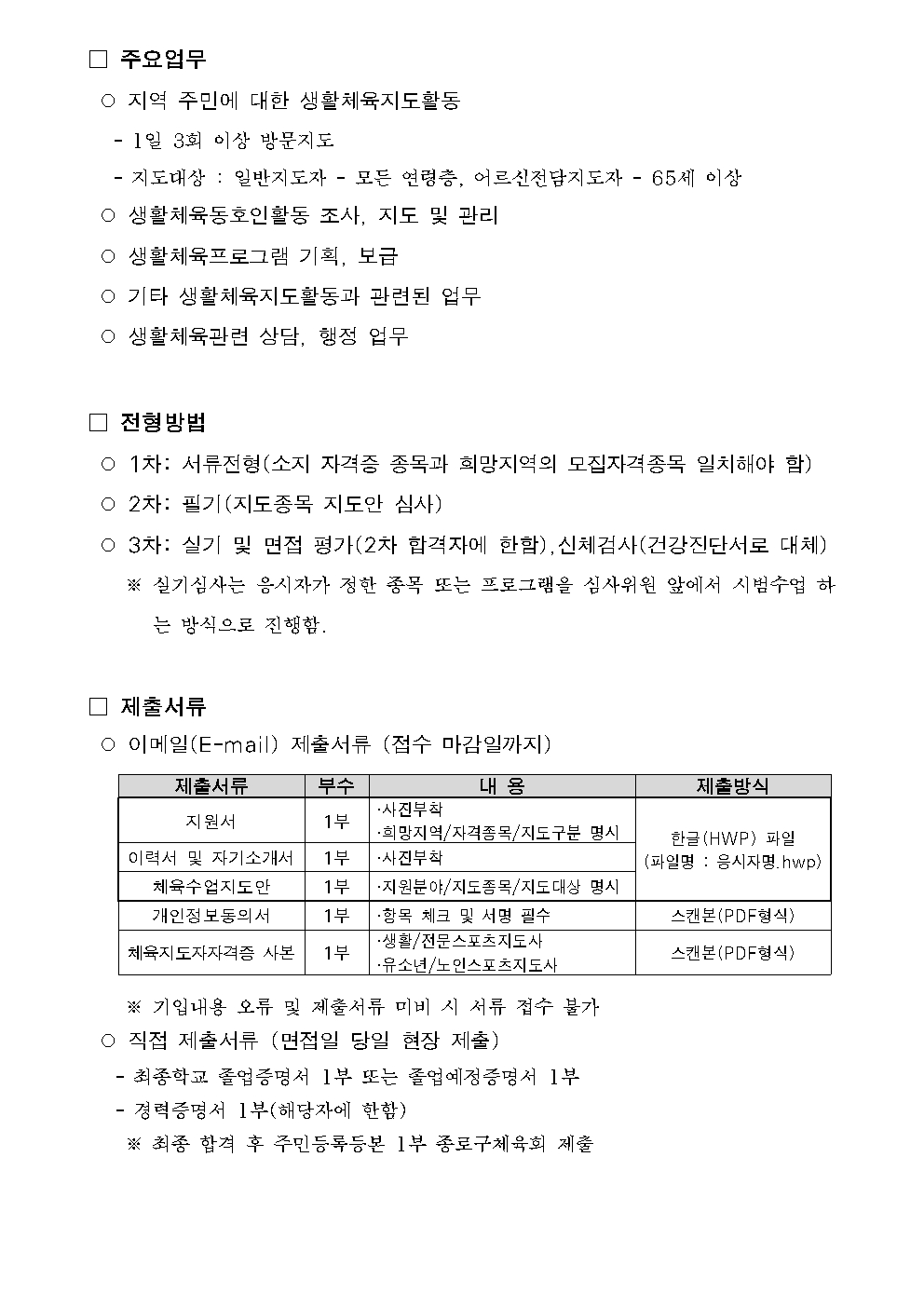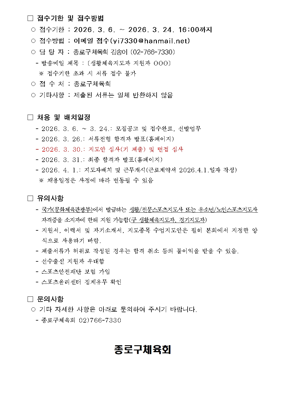 2026년 3월 생활체육지도자 채용공고